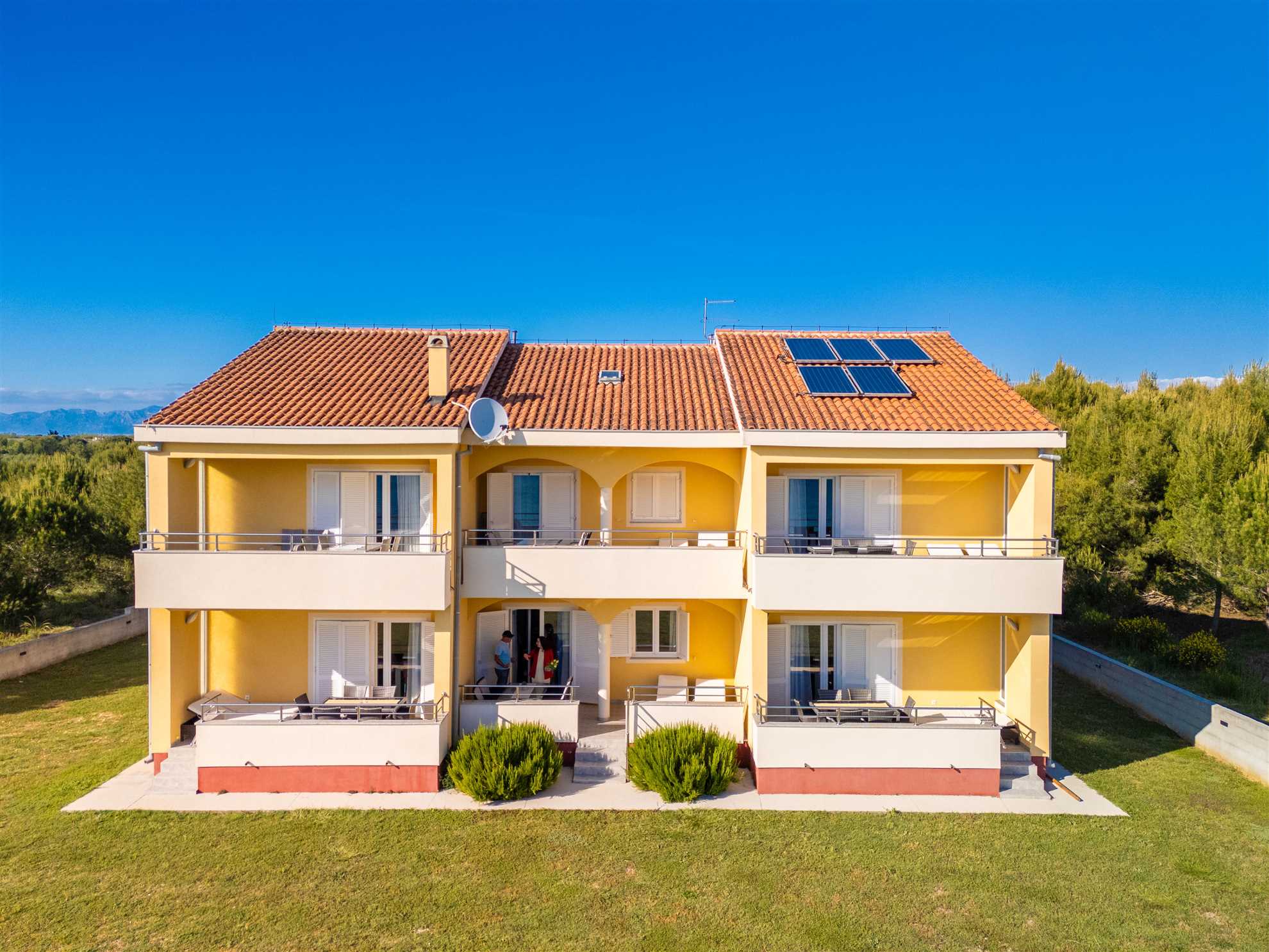 Air conditioning, wireless internet, SAT TV, oven, Espresso machine, dishwasher, washing machine, outdoor shower, barbecue and roofed parking on the property are at the guest’s disposal without extra charge. A baby cot and highchair are available upon request. Pets are welcome for a surcharge of EUR 15 per pet per night.