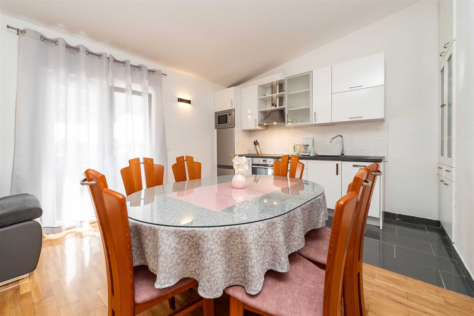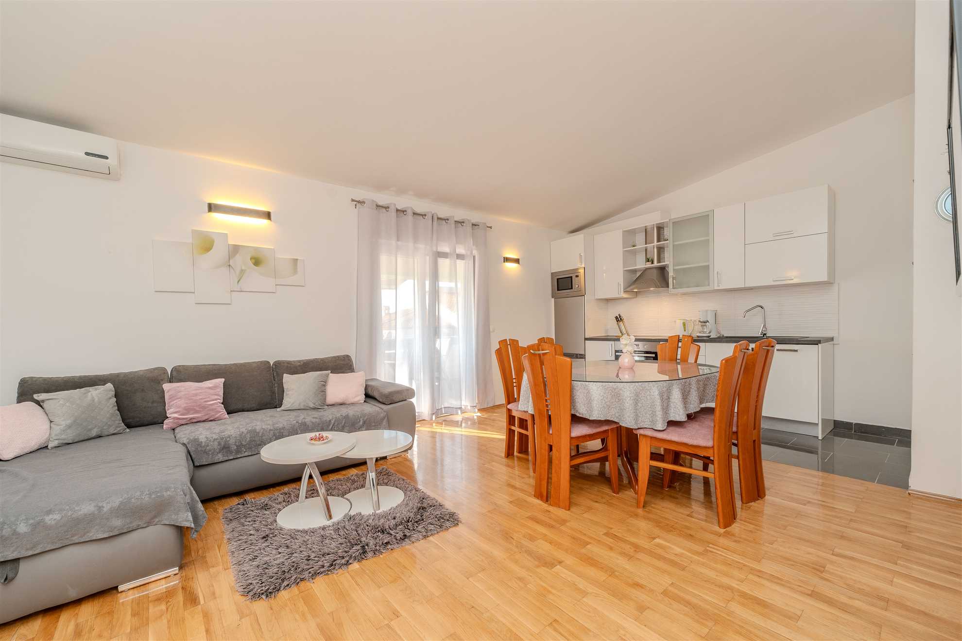 This spacious apartment on the first floor is located in a quite part of the municipality Privlaka and is ideal for 4 persons.