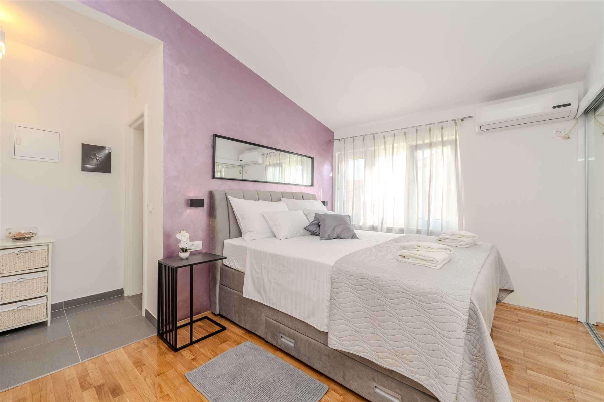 Air conditioning, wireless internet, SAT TV, oven, dishwasher and parking on the property are at the guest’s disposal without extra charge. Baby cot and highchair are available upon request.